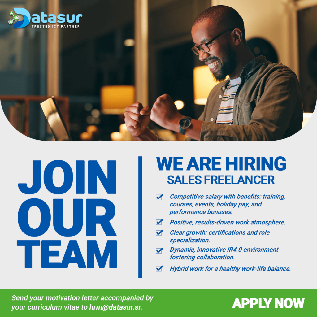 De Sales Freelancer biedt organisatorische en administratieve ondersteuning aan het Commercial Affairs team. De Sales Freelancer denkt onder andere mee in het opzetten van sales acties om de conversie van bestaande acties te verhogen. Het inventariseren, analyseren, en communiceren van acties vanuit alle partijen in de ICT/ Datacenter branche in Suriname/ Regio behoort eveneens tot een van de belangrijkste verantwoordelijkheden van de positie.
